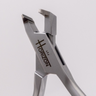 This instrument features extra long handles and a compact head to ensure easy access in hard to reach areas. It cuts wires close to the buccal tube and safely holds the distal end. The Tungsten Carbide inserts provide unsurpassed performance and long wear. All Horizon distal end cutters feature safety hold.